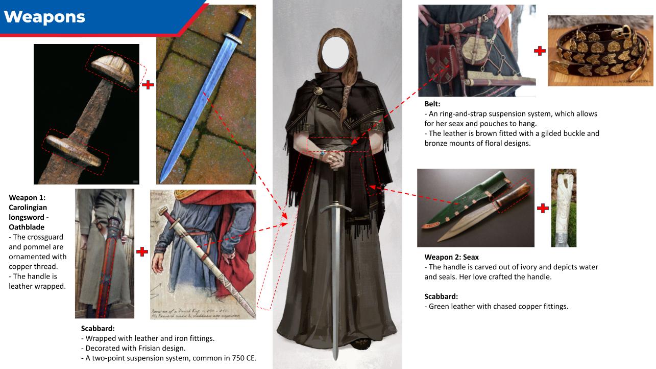 - Visual design. Informed by Carolingian attire, Frankish arms and archaeological finds from Dorestad his design blends old and new.