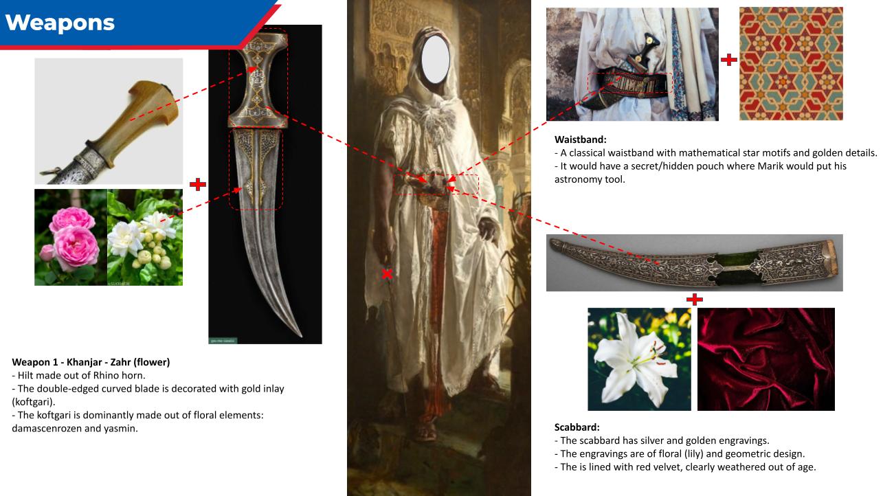 - Combat Design. Trained in evasive close-quarters combat, Malik wields a Khanjar with sharp precision.