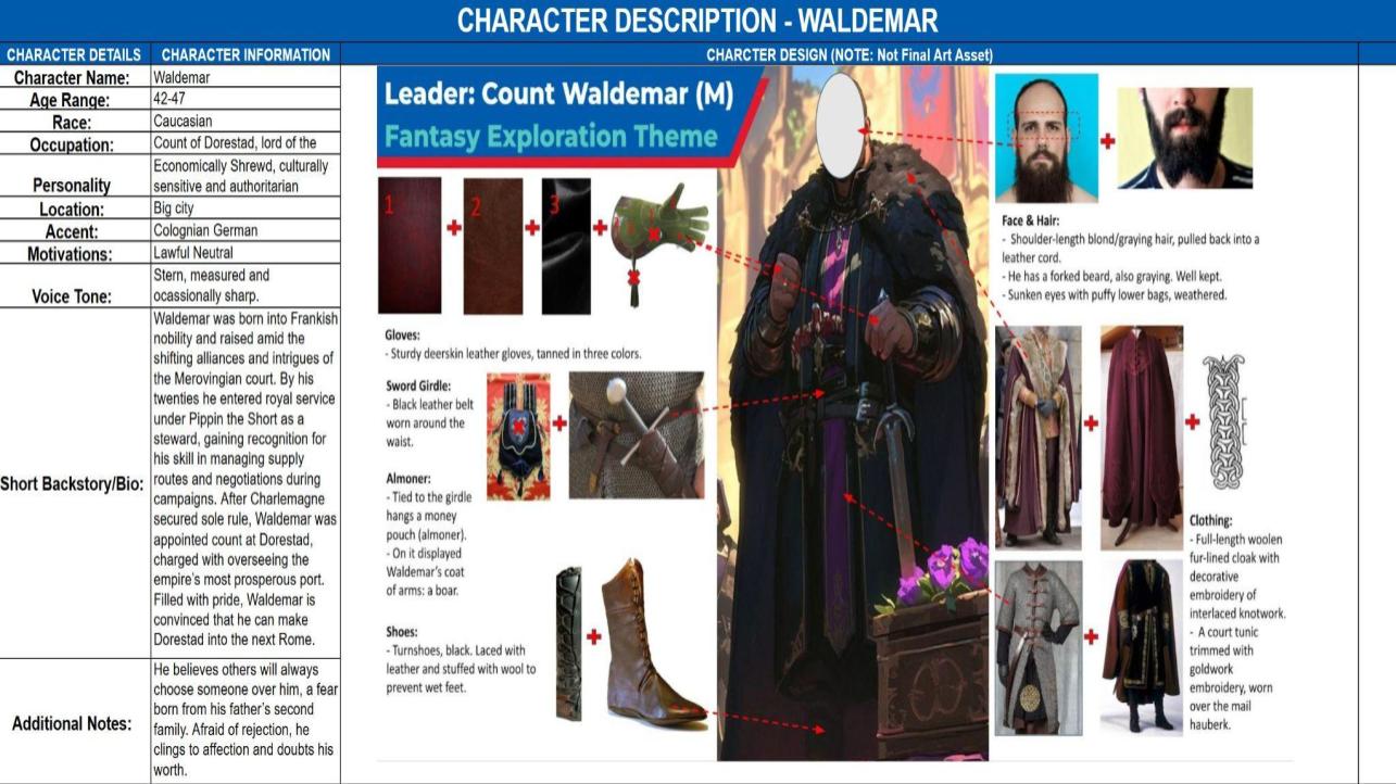 - Personality. Insecure yet ambitious, Waldemar craves affection like Daenerys Targaryen and rules like Caesar by centralizing power and tolerating differences when it serves unity. His dialogue barks reinforce his patronage of Dorestad while displaying character.