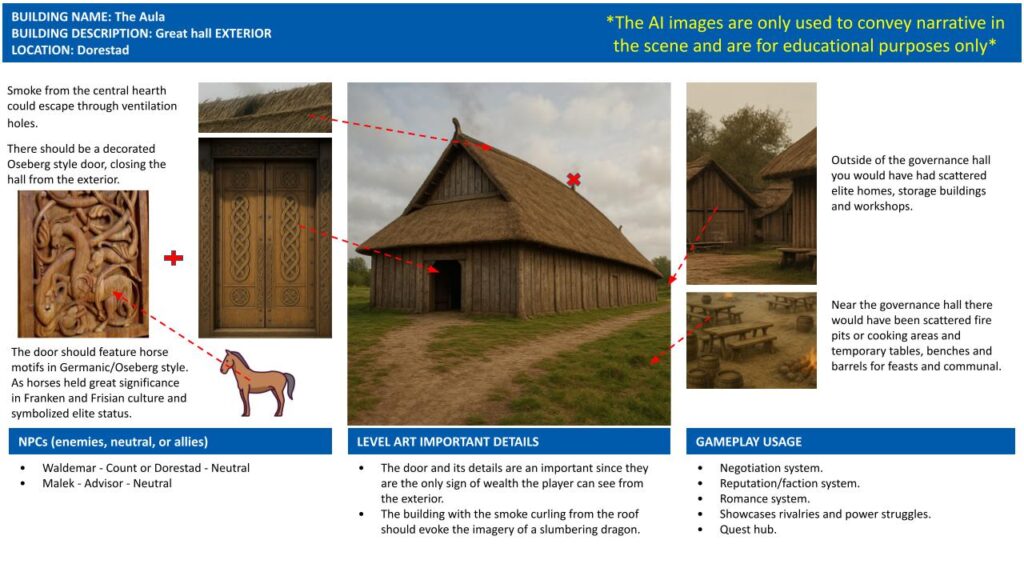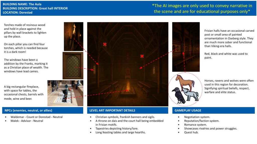 Designed a Count NPC quest giver who sees Dorestad’s rise as his mission. From the Great Hall he asserts dominance over the Frisians, becoming the player’s strongest ally or worst enemy.