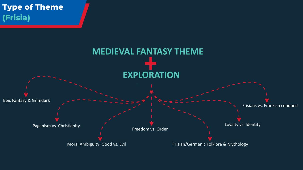 This resulted in a thematic map that defined Frisia’s narrative focus and guided decisions on branching dialogue and faction conflicts.