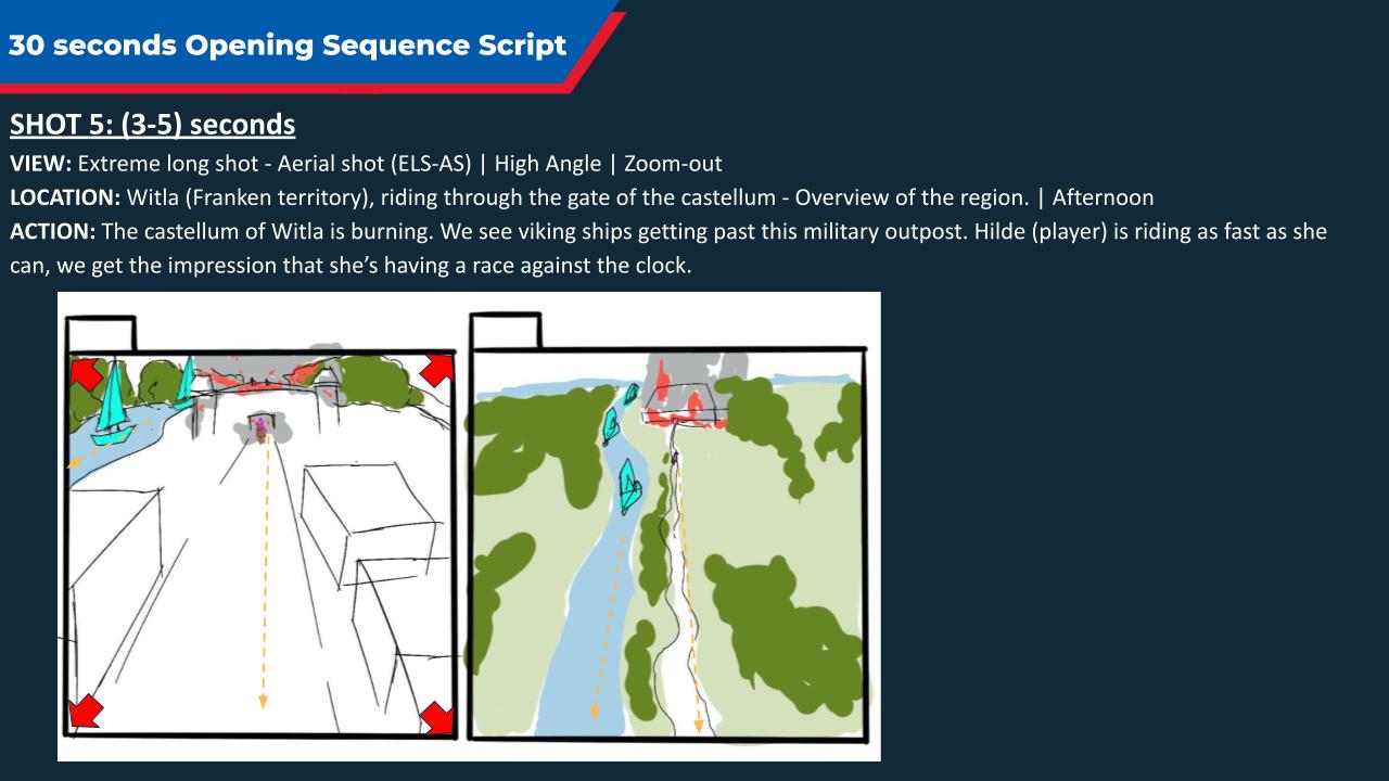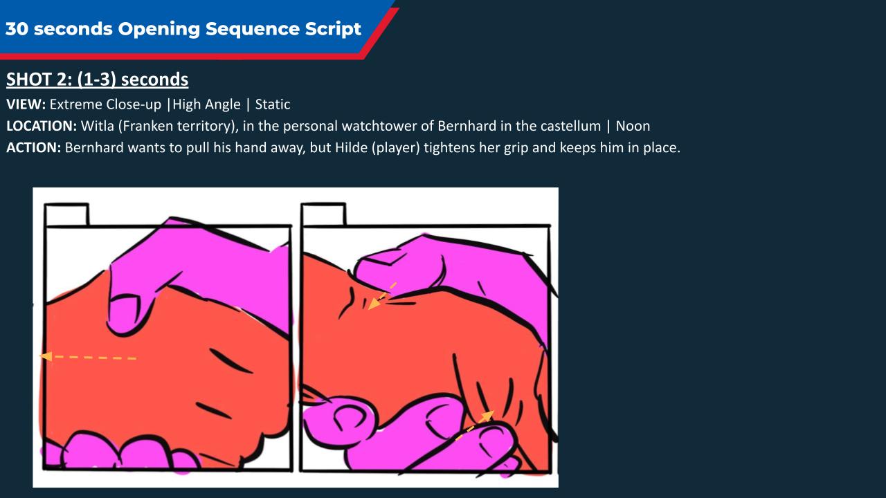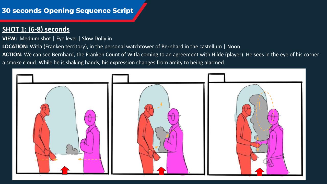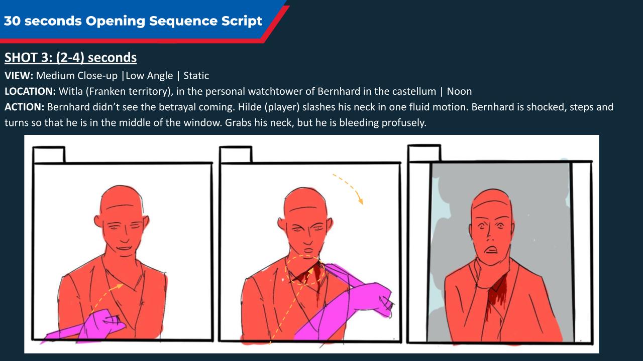 Wrote a storyboard script for the opening sequence of the game, and designed a preliminary storyboard to emulate collaboration with the art and marketing teams, and get internal approvals: