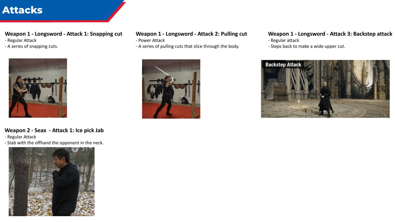 - Combat design. Designed Hilde’s combat style around the Carolingian longsword. Supporting combat designers by integrating narrative context into weapons choice, attack naming and player progression.